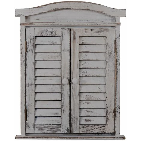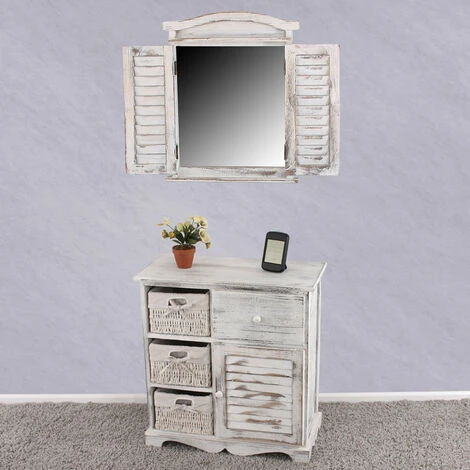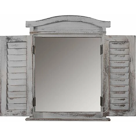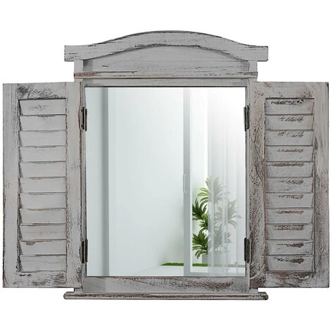 Miroir mural forme fenêtre avec volets 53x42x5cm en bois gris vieilli