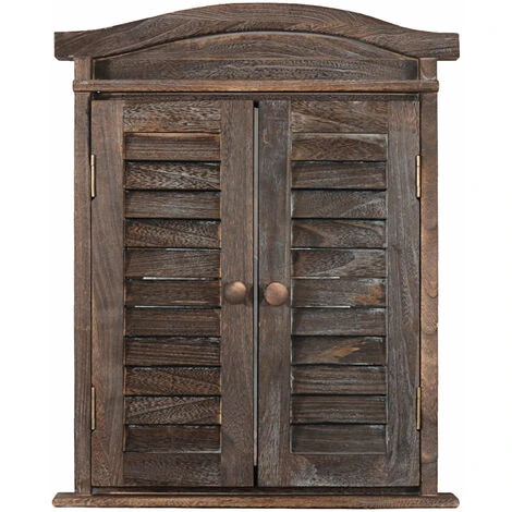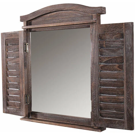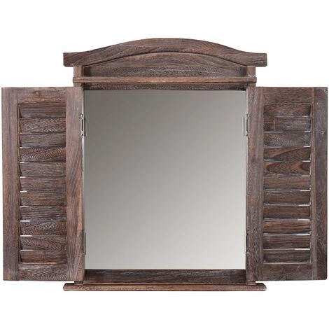 Miroir mural forme fenêtre avec volets 53x42x5cm en bois marron vieilli