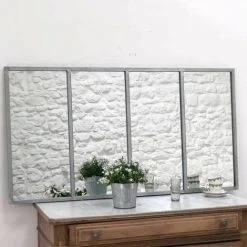 DECOCLICO FACTORY Miroir Verrière Atelier Rectangulaire Métal Finition Zinc 140 X 75 Cm – Barney – Intérieur/extérieur – Plateado