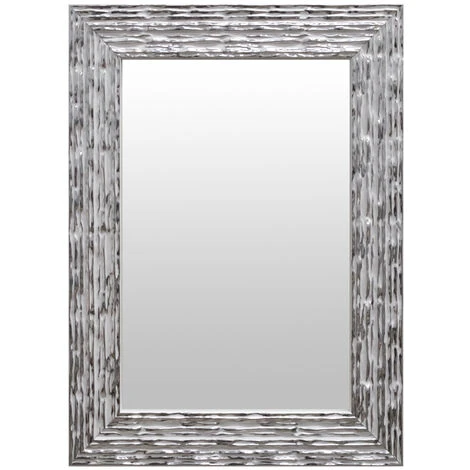 - Miroir rectangulaire fabriqué en bois DM avec relief qui assemble des tonalités blanches et argentés.