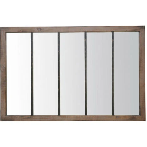 DRAWER Miroir Verrière En Métal Et Bois 140×90 Cm – Oppy – Couleur – Bois Foncé / Noir