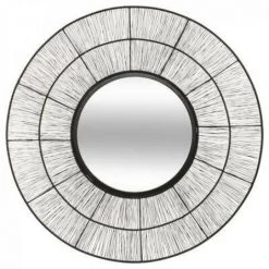miroir metal fil d76 andreane, noir_x000D_- Matière: fer / verre / mdf_e1_x000D_- Dimension produit: Diamètre 76 x Largeur 2cm_x000D_Miroir : Diamètre 37cm_x000D_- Groupe de produit: Décoration murale, Miroir_x000D_- L’article est emballé individuellement_x000D_- Emballage: sticker_x000D_- Presentation: sur etagere_x000D_- Dimension de l’unité d’emballage: 80 x 11.5 x 82cm – 11.2kg