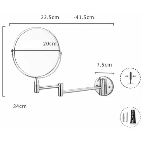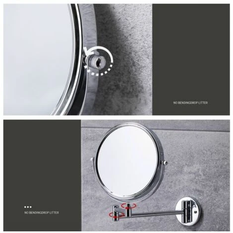 - Miroir double face, rotation à 360°, fonction de grossissement, matériau métallique, installation de perçage gratuite