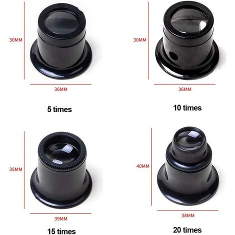 Paquet: 4 pièces de loupe de réparation de montre (grossissement différent)