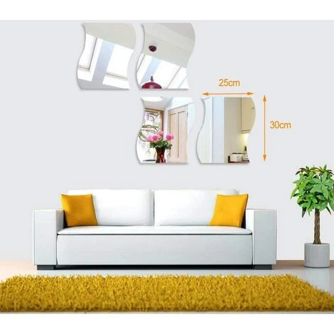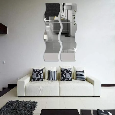HKLFFJA Miroir Murale Adhesif,6pcs Argenté Miroir Autocollant Mural,Forme En Plastique Ondulé Mur En Plastique DIY Decal Miroir Pour La Décoration De Surface Bureau À La Maison (Argent, 30 X 25cm)