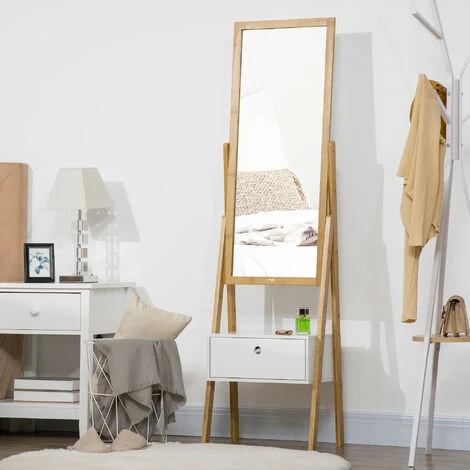 Ce superbe miroir rectangulaire sur pied vestiaire d’entrée 2 en 1 allie avec brio originalité, raffinement et grande utilité ! Conçu et fabriqué en MDF et bois massif de bambou, ce meuble sublimera l’espace intérieur de votre choix : couloir, chambre, dressing, salon, etc. Original et fonctionnel, ce meuble d’entrée à tout pour plaire. Son tiroir est idéal pour ranger vos affaires.