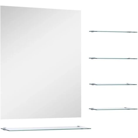 Notre miroir mural avec étagères est orné d’un design élégant. Il sera un supplément pratique et décoratif à votre salle de bain, salon ou chambre à coucher. Fabriqué en verre trempé de qualité, ce meuble de salle de bain est durable et facile à nettoyer. Le miroir rectangulaire encadré au design minimal et contemporain mettra en valeur n’importe quelle pièce, tandis que les quatre petites étagères et la grande étagère en font une pièce pratique pour un rangement supplémentaire. Vous pouvez ranger et exposer les essentiels de la décoration ou du dressing de manière propre et ordonnée. Ce miroir est facile à assembler.