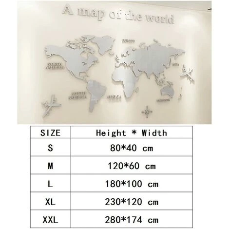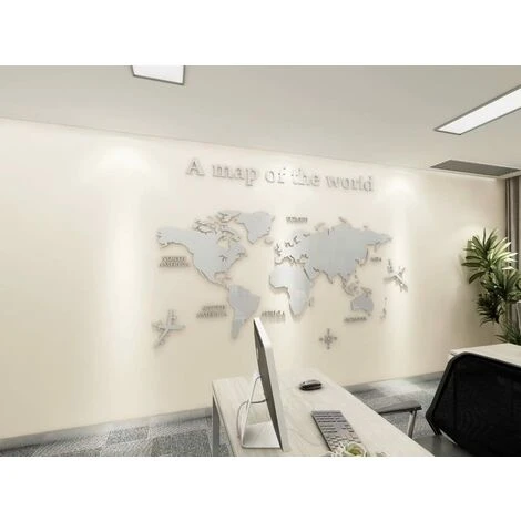 KARTOKNER 3D Art Carte Du Monde Muraux Sticker Murale Wall Décoration Décor Stickers Sticker Autocollant Murale Muraux Wall DIY Acrylique Cristal Bureau Étude Salon Canapé Fond Décor 120 * 60cm (gris Clair)