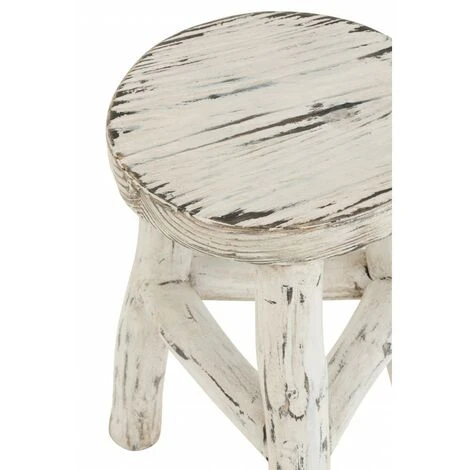 LANADECO Tabouret Ibiza Rond En Bois Blanc Delavé – Blanc