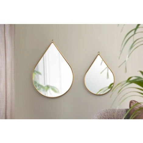 1.Miroir en forme de goutte d’eau : Le miroir est en forme de goutte d’eau ce qui lui donne une touche fantaisie. Les contours doré de la glace apporte de l’élégance et vous permet d’installer votre miroir où vous le souhaitez. Attention les outils d’assemblage ne sont pas fournis.