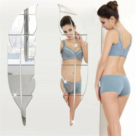 Miroir en forme de plume : Deux tailles sont facultatives, la petite taille en 73 * 18 cm et la grande taille en 120 * 30 cm. Livré avec du ruban adhésif double face, facile à fixer au mur.