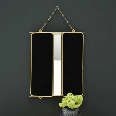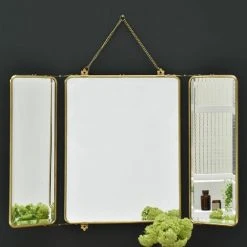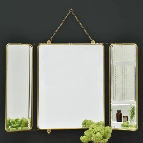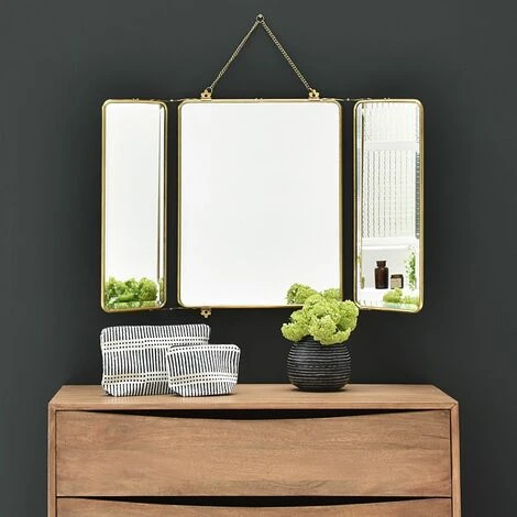 MAISON TILLEUL Miroir De Barbier 3 Faces En Laiton Avec Chaîne 87 X 55,5 Cm – Chaumont – Dorado
