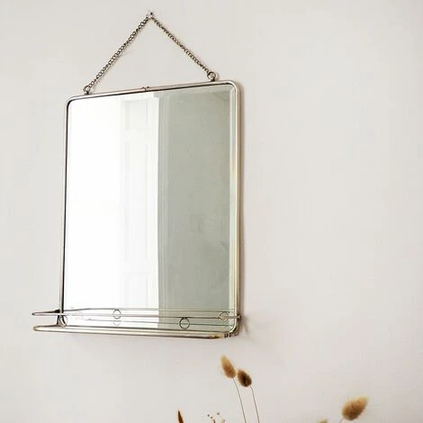 MAISON TILLEUL Miroir De Barbier Avec étagère En Nickel Argenté 40,5 X 52 Cm – Chaumont – Plateado