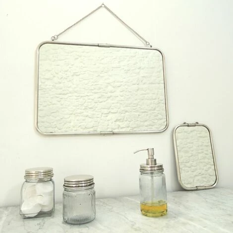 On aime le style broc chic, et pour une déco pleine de charme et de cachet, optez pour ce miroir de barbier proposé par la collection Chaumont de notre marque à l’esprit authentique Maison Tilleul. Ce miroir est doté d’une chaîne amovible que vous pourrez disposer sur le côté horizontal ou vertical du miroir, en fonction du sens dans lequel vous souhaitez le disposer. En laiton avec une finition nickel argenté plutôt mate, ce miroir est comme patiné par le temps. Le matériau est très qualitatif : sur le corps en laiton, une fine couche de nickel est posée, succédée par une couche d’argent, puis d’un revêtement anti-ternissement pour éviter toute oxydation. Découvrez les autres formats, simples ou 3 faces, avec lesquels vous pourrez tout à fait associer ce miroir pour un joli effet de volume, dans une entrée par exemple. Il trouvera aussi très bien sa place dans une salle de bain, une chambre…Découvrez aussi les accessoires de salle de bains de la collection Chaumont.