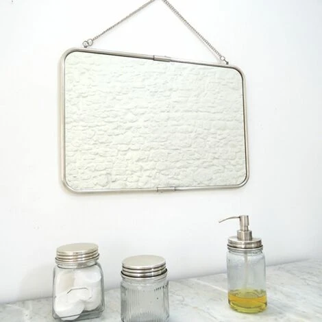 MAISON TILLEUL Miroir De Barbier En Laiton Argenté Avec Chaîne 57 X 39 Cm – Chaumont – Plateado