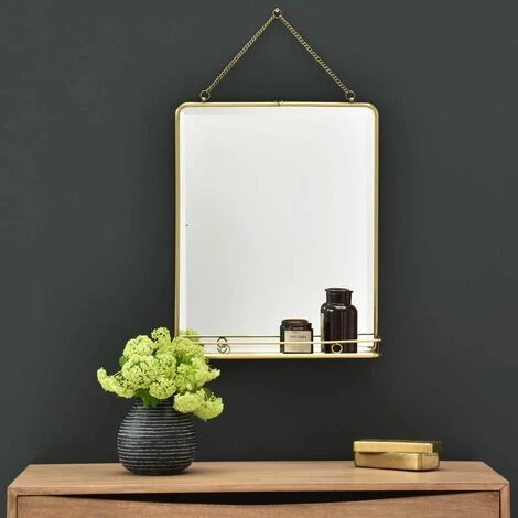 MAISON TILLEUL Miroir Rectangulaire En Laiton Avec étagère 40,5 X 52 Cm – Chaumont – Dorado