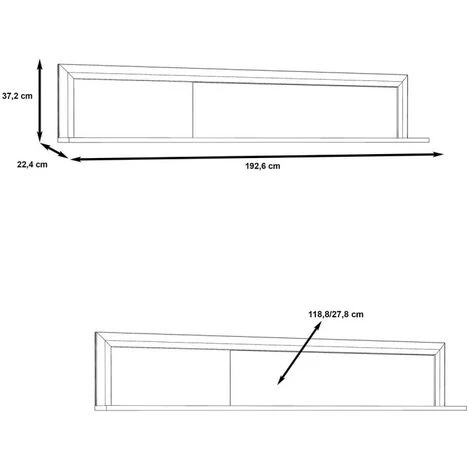 - DIMENSIONS GENERALES APPROXIMATIVES : longueur 193 cm x hauteur 37 cm x profondeur 22 cm