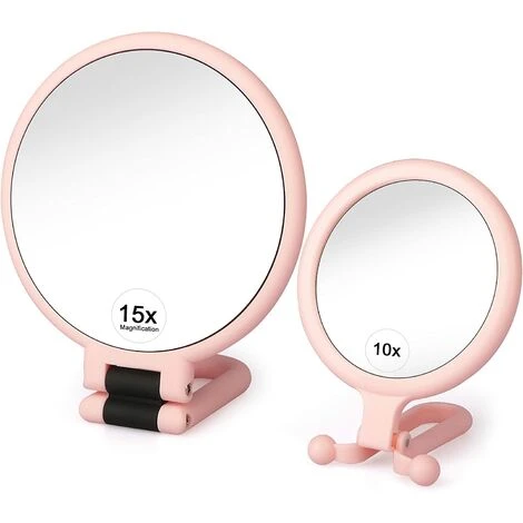 MINKUROW 2 Pièces Miroirs Maquillage, Rétroviseurs à Main Double Face Avec Grossissement 1/10/15X, Miroir Beauté Voyage Pliable Portable Petit Salle De Bain Suspendue Pour Filles Femmes Hommes, Rose