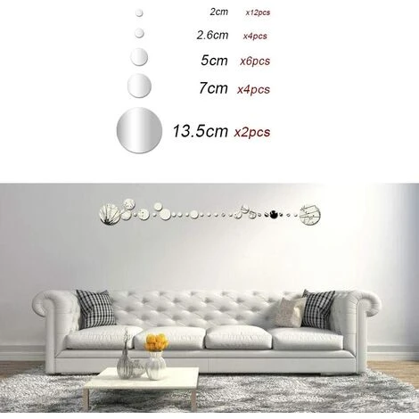 MINKUROW 28pcs Stickers Muraux Miroirs Rond Décoratifs Cercle Miroir Autocollant 3D Acrylique Deco Mural Amovible Pour Salon Chambre Maison Décoration Intérieur (Dia:2-13.5cm)