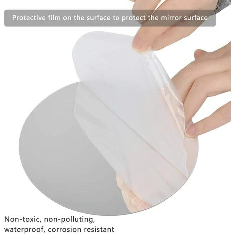 - La surface du miroir est recouverte d’un film protecteur et le dos d’un ruban adhésif double face. L’effet miroir de la lentille est identique à celui du miroir en verre. Ne vous coupez pas la main. Convient particulièrement aux enfants en bas âge et aux pièces plus anciennes.