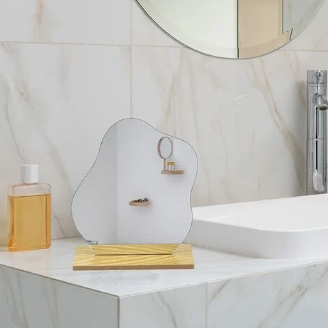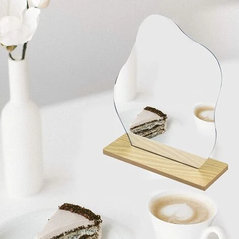 MINKUROW Acrylic Miroir Irregulier, Miroir Chambre Sans Cadre Miroir En Forme Avec Base En Bois Miroir Acrylique In-Outdoorshop Pour Bain, Salon Et Pièce