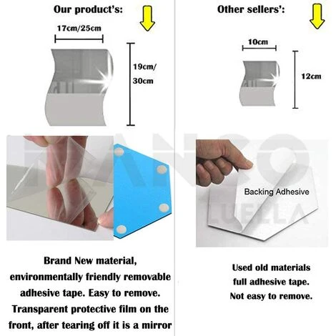 - Taille appropriée : ces autocollants miroir sont ondulés, 2 mm d’épaisseur. Léger et durable. Il suffit de décoller les films de protection blancs, puis de les coller sur une surface lisse, telle que le carrelage, les murs, les portes, les fenêtres, les placards. Très collant, ne tombe pas facilement.