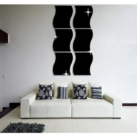 MINKUROW Lot De 6 Autocollants Muraux Effet Miroir 3D Ondulés Pour Décoration De La Maison, Salon, Chambre, Canapé, TV, Décoration Murale, Décoration Murale.le Noir