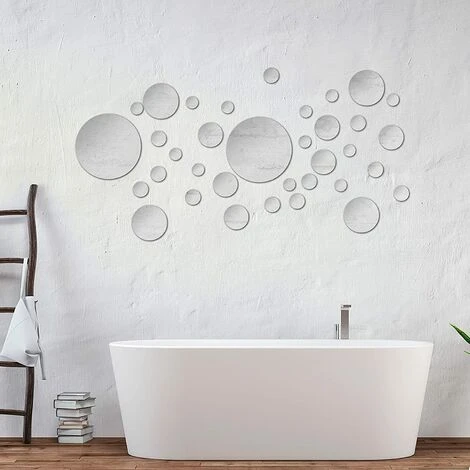 - Plusieurs Tailles : L’autocollant mural de miroir a 4 diamètres différents. 15 cm (6 pouces), 2 au total ; 8 cm (3 pouces), 4 au total ; 5,4 cm (2 pouces), 6 au total ; 3 cm (1 pouce), 18 au total. Les autocollants muraux sont tous séparés, vous pouvez le combiner dans n’importe quelle forme que vous aimez.