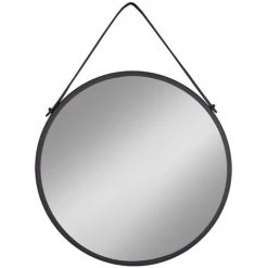 Miroir coloris Noir en acier / verre avec cadre en acier noir et courroie en PU. Elégant et moderne. Dimensions : 38 x 2 x 38 cm. Matière : acier. Coloris : Noir. Poids : 1.30 KG
