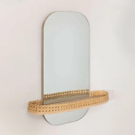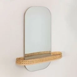 Les miroirs sont des accessoires décoratifs et fonctionnels pleins de magie. Ils sont largement utilisés en décoration pour apporter de l’ espace et de la lumière à une pièce. Découvrez notre miroir mural avec étagère Tegri, un complément qui, en plus de remplir le mur de vie, est hautement fonctionnel grâce à son étagère en MDF combiné à du rotin naturel, résistant et durable dans le temps. Original, simple et très polyvalent, il est parfait à intégrer dans votre entrée et ainsi avoir toujours ce dont vous avez besoin à portée de main avant d’entrer ou de sortir de chez vous. Il sera parfait dans n’importe quel espace car il s’intègre parfaitement à tout style décoratif prédominant. Sans aucun doute, Tegri est un produit différent qui ne passera pas inaperçu. Obtenez le maintenant ! Nous recommandons de nettoyer avec un chiffon humide en évitant l’utilisation de produits chimiques. Dimensions (Hauteur x Largeur x Profondeur): 55 cm x 45,5 cm x 12 cm IMPORTANT : Le service standard porte-à-porte ne comprend pas la livraison et la collecte des marchandises au domicile du client, qui sont à la charge de ce dernier. Il est possible que le livreur aide volontairement à la livraison de la marchandise (ceci est totalement volontaire pour le livreur et la société de transport et ne relève pas de la responsabilité de Sklum).L’assemblage n’est pas non plus inclus.