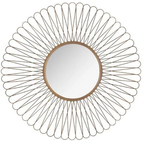 Ce beau miroir d’intérieur forme soleil avec son cadre design en fer coloris marron est très partique et déco. Dimensions : L.76 x l.2 x H.76 cm. Poids : 2,6 kg. Matière: verre/fer. Couleur: Marron