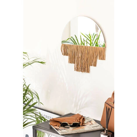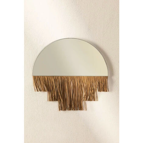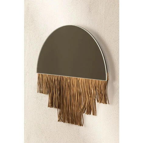 Nous vous présentons le miroir mural Larin, un accessoire très art déco qui nous rappelle les années folles ou des lieux comme les cabarets. Sans perdre sa fonctionnalité, son miroir semi-circulaire qui fournit de la lumière crée une sensation d’espace supplémentaire dans n’importe quel coin ou pièce de votre maison. De plus, vous pouvez habiller et décorer les murs de votre maison avec élégance et exclusivité. Une touche originale et sophistiquée qui se démarquera subtilement et sans surcharger aucun style décoratif.Le matériel de fixation au mur n´est pas fourni. Pour un bon entretien, nous vous recommandons de nettoyer le miroir avec un chiffon en microfibre et un nettoyant pour vitres. De temps en temps, dépoussiérez délicatement les franges du cadre avec un plumeau. Évitez d’utiliser des produits abrasifs. Dimensions (Hauteur x Largeur x Profondeur): 38 cm x 40 cm x 1 cm IMPORTANT : Le service standard porte-à-porte ne comprend pas la livraison et la collecte des marchandises au domicile du client, qui sont à la charge de ce dernier. Il est possible que le livreur aide volontairement à la livraison de la marchandise (ceci est totalement volontaire pour le livreur et la société de transport et ne relève pas de la responsabilité de Sklum).L’assemblage n’est pas non plus inclus.