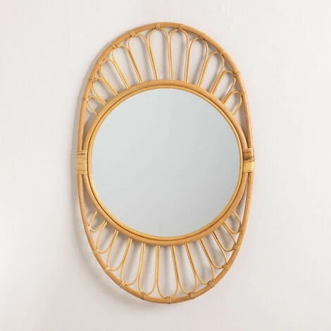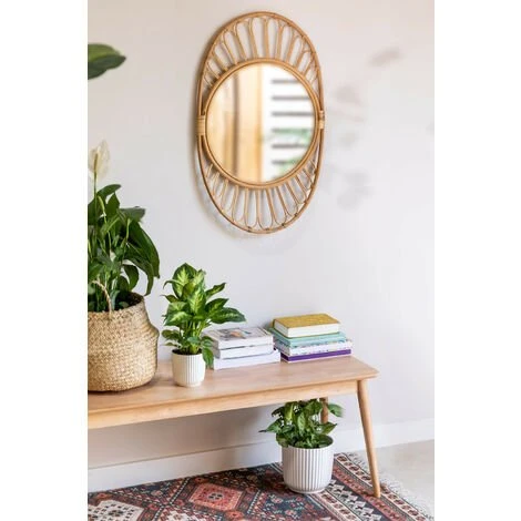 Le miroir mural ovale Funna est l’accessoire parfait pour décorer les murs de votre maison, car grâce à son caractère naturel, il s’intègre à une grande variété de styles. Fabriqué avec un cadre ovale en rotin, un matériau durable, léger et résistant obtenu à partir de palmiers dans les forêts d’Asie, il sera parfait pour créer des environnements personnels et distinctifs dans les coins de la chambre, du salon ou du hall. Avec Funna, vous apporterez de la lumière, de l’espace et de la vie à vos intérieurs tout en leur donnant cette touche de style et de personnalité. Pour son entretien correct, nous vous recommandons de le nettoyer avec un chiffon humide, en évitant l’utilisation de produits chimiques. Ce produit n’inclut pas le matériel de fixation au mur. Dimensions (Hauteur x Largeur x Profondeur): 79 cm x 50 42 cm x 2,5 cm IMPORTANT : Le service standard porte-à-porte ne comprend pas la livraison et la collecte des marchandises au domicile du client, qui sont à la charge de ce dernier. Il est possible que le livreur aide volontairement à la livraison de la marchandise (ceci est totalement volontaire pour le livreur et la société de transport et ne relève pas de la responsabilité de Sklum).L’assemblage n’est pas non plus inclus.