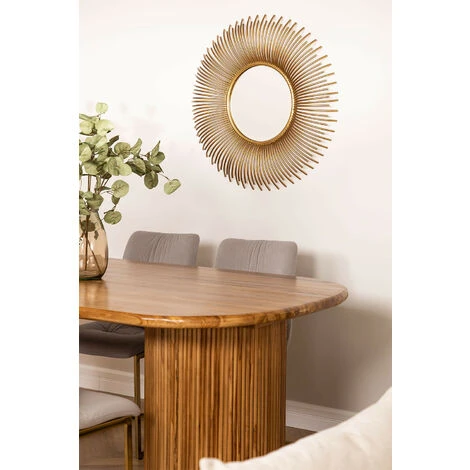 Les miroirs reviennent avec un twist très actuel, surprenant et transformant complètement le concept d’accessoires de décoration. Le miroir mural rond Nazar est un miroir de forme ronde encadré d’une structure métallique originale avec des bords formant un cadre rond irrégulier, aussi attrayant et exclusif qu’élégant et sophistiqué. Un accessoire décoratif si fonctionnel que vous pouvez facilement le placer dans n’importe quelle pièce. Malgré son style industriel, il s’intégrera parfaitement à tous les styles de votre maison, le mettant subtilement en valeur sans être écrasant. Nettoyez le miroir avec un chiffon en microfibre et un nettoyant pour vitres. De temps en temps, nettoyez délicatement le cadre avec un plumeau. Ne pas utiliser de produits abrasifs. Le matériel de fixation au mur n´est pas fourni. Dimensions (Hauteur x Largeur x Profondeur): cm x 80 cm x 6 cm IMPORTANT : Le service standard porte-à-porte ne comprend pas la livraison et la collecte des marchandises au domicile du client, qui sont à la charge de ce dernier. Il est possible que le livreur aide volontairement à la livraison de la marchandise (ceci est totalement volontaire pour le livreur et la société de transport et ne relève pas de la responsabilité de Sklum).L’assemblage n’est pas non plus inclus.