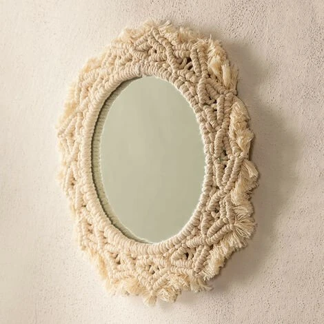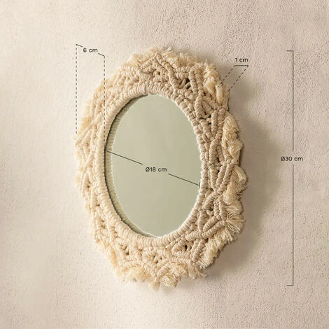 Les miroirs sont des éléments décoratifs largement utilisés dans les maisons, en plus de donner de l’espace et de la lumière, ils aident à faire la différence et à créer des environnements très intéressants avec du caractère. Le miroir mural rond Jerom a réalisé cette technique artisanale basée sur la réalisation de nœuds avec du fil de coton. Un cadre de conception simple qui vous donnera une touche d’originalité et vous serez le point d’attention. Idéal pour les salons, les chambres et les couloirs, ajoutez un air bohème à la pièce avec cette option élaborée. Étant un produit tissé à la main, il peut avoir des variations qui le rendent unique. Nous vous conseillons de nettoyer avec de l’eau tiède et un détergent liquide. Laissez sécher à l’air. Pour nettoyer le miroir, utilisez des produits spécifiques. Le matériel de fixation au mur n´est pas fourni. Dimensions (Hauteur x Largeur x Profondeur): cm x 30 cm x 1 cm IMPORTANT : Le service standard porte-à-porte ne comprend pas la livraison et la collecte des marchandises au domicile du client, qui sont à la charge de ce dernier. Il est possible que le livreur aide volontairement à la livraison de la marchandise (ceci est totalement volontaire pour le livreur et la société de transport et ne relève pas de la responsabilité de Sklum).L’assemblage n’est pas non plus inclus.