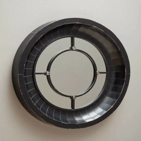 Un superbe miroir rond design Chehoma, qui dispose d’un cadre d’assemblage en métal noir. Très original, vous serez également séduit par son grand format. Placez sur vos murs il apportera une touche Industrielle dans votre intérieur et séduira vos convives , il va éclairer vos espaces, grâce à lumière qu’il reflétera.