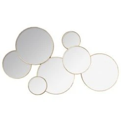 Miroir rond coloris Or en MDF / verre. Ce miroir moderne et élégant est facile à installer dans votre salon. Dimensions : L. 61.5 x l. 2 x H. 37 cmMatière : Métal, verre et MDFPoids : 2,05 KG