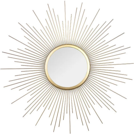 Le beau miroir décoratif Susi de couleur or mesure 60cm de diamètre. En forme de soleil, le cadre est en métal.