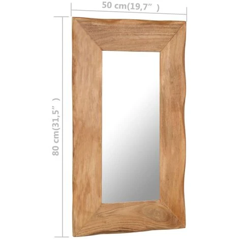 Ce magnifique miroir cosmétique ajoute une touche de charme vintage à votre décoration intérieure. Encadré de bois d’acacia robuste et durable, ce miroir unique crée un style rétro dans n’importe quel espace. La finition parfaite réalisée sur le bois d’acacia solide ajoute encore plus de charme à ce miroir magnifiquement conçu. Il peut être utilisé dans la salle de bain ou dans le couloir, servant de miroir cosmétique, de miroir de décoration ou de miroir d’entrée. Aucun assemblage n’est requis. De plus, il peut être placé aussi bien en position horizontale que verticale grâce aux doubles crochets situés à l’arrière du miroir. Remarque importante : La couleur et le grain de bois peuvent varier d’une pièce à l’autre, rendant chacun de nos miroirs uniques ; la livraison est aléatoire.