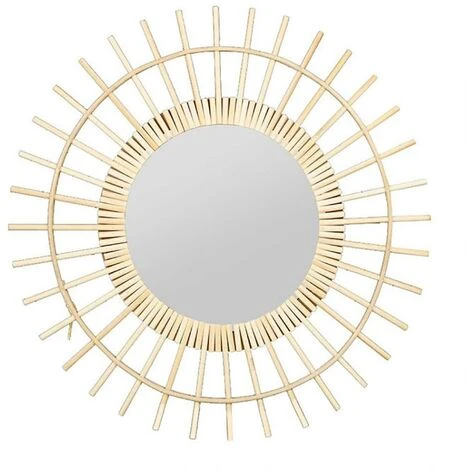 Look naturel pour ce miroir rond en bambou soleil qui embellira votre intérieur. Apportez du rêve grâce à ce joli miroir naturel de 54 cm de diamètre.