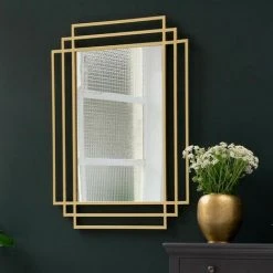 PASSAGE VERNET Miroir Art Déco Rectangulaire En Métal Doré 101 X 76 Cm – Ginger – Intérieur/extérieur – Dorado