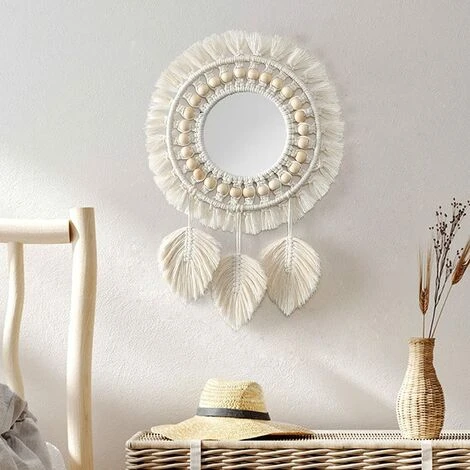 [Design magnifique et exquis]: Ce miroir mural boho est conçu grâce au sens créatif et à la perspective des meilleurs designers. En utilisant un superbe savoir-faire en franges en macramé, combiné à un miroir en verre haute définition. Un style de design parfait rendra toute pièce élégante. Une qualité fantastique sera absolument dépasser vos attentes !