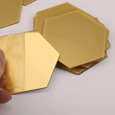 PESCE 12 PCS Acrylique Miroir Stickers Muraux Auto-Adhésif Amovible Hexagonal Décoratif Feuille De Miroir Pour La Maison Salon Chambre DecorGold