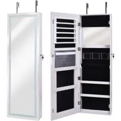 DlandHome Armoire à Bijoux Avec Miroir Pleine Longueur Verrouillable Sur Pied Armoire à Bijoux Avec 6 Lumières LED, Blanc QH-6139-D