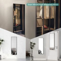 EMKE Miroir Sur Pied Miroir Mural Rectangulaire 160 X 40 Cm Noir Miroir Suspendu Mural Avec Support Amovible Miroir De Sol Sur Pied En Alliage D’aluminium Miroir Pleine Longueur Pour Dressing/Vestiaire