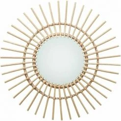 Ensoleillé Miroir Décoratif En Rotin – Décoration Murale – Miroir En Rotin – Pour Salon, Chambre à Coucher, Couloir – Rond