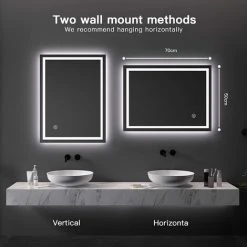 KEEPBUYING DRIPEX Miroir De Salle De Bain 70x50cm Anti-buée Miroir Mural Avec LED Avec éclairage Avec Interrupteur