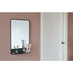 LIFA LIVING Miroir Mural Métal Noir, Miroir Industriel Avec Etagère, Miroir Rectangulaire Pour Salon, Hall Ou Chambre, Miroir Mural Design Moderne 80 Cm – Noir