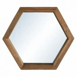 MACABANE ALIDA – Miroir ‘L’ Marron Structure Bois Teck Recyclé Forme Hexagone – Marron
