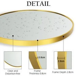 VINGO Miroir Rond En Métal Avec Corde Miroir Mural Miroir De Salle De Bain Miroir Décoratif Ø50cm Or – Or